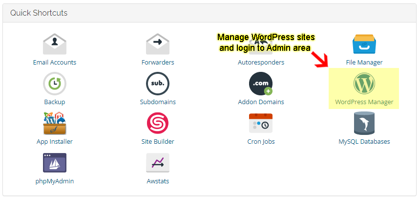 2. Click on "WordPress Manager" under "Quick Shortcuts"
