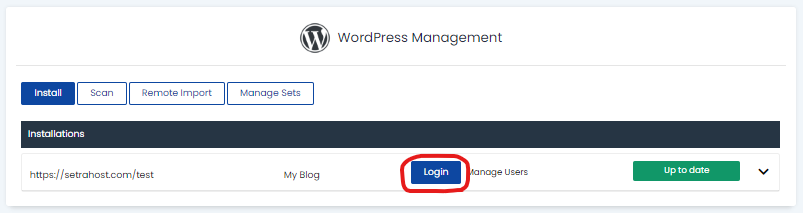 3. Click "Login" on your desired WordPress website and it will automatically take you to your WordPress admin panel.